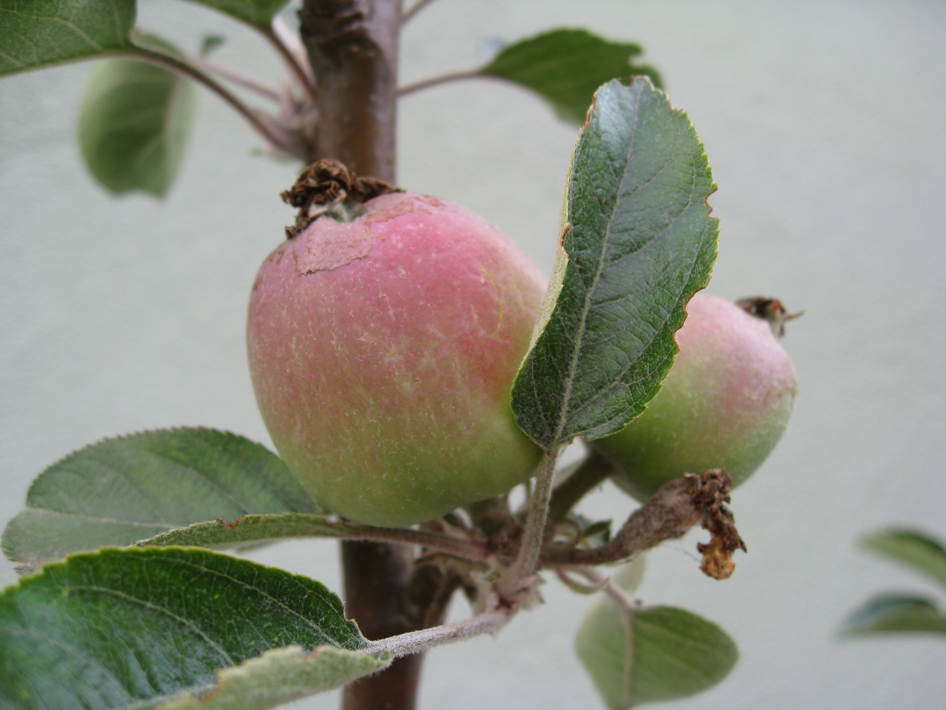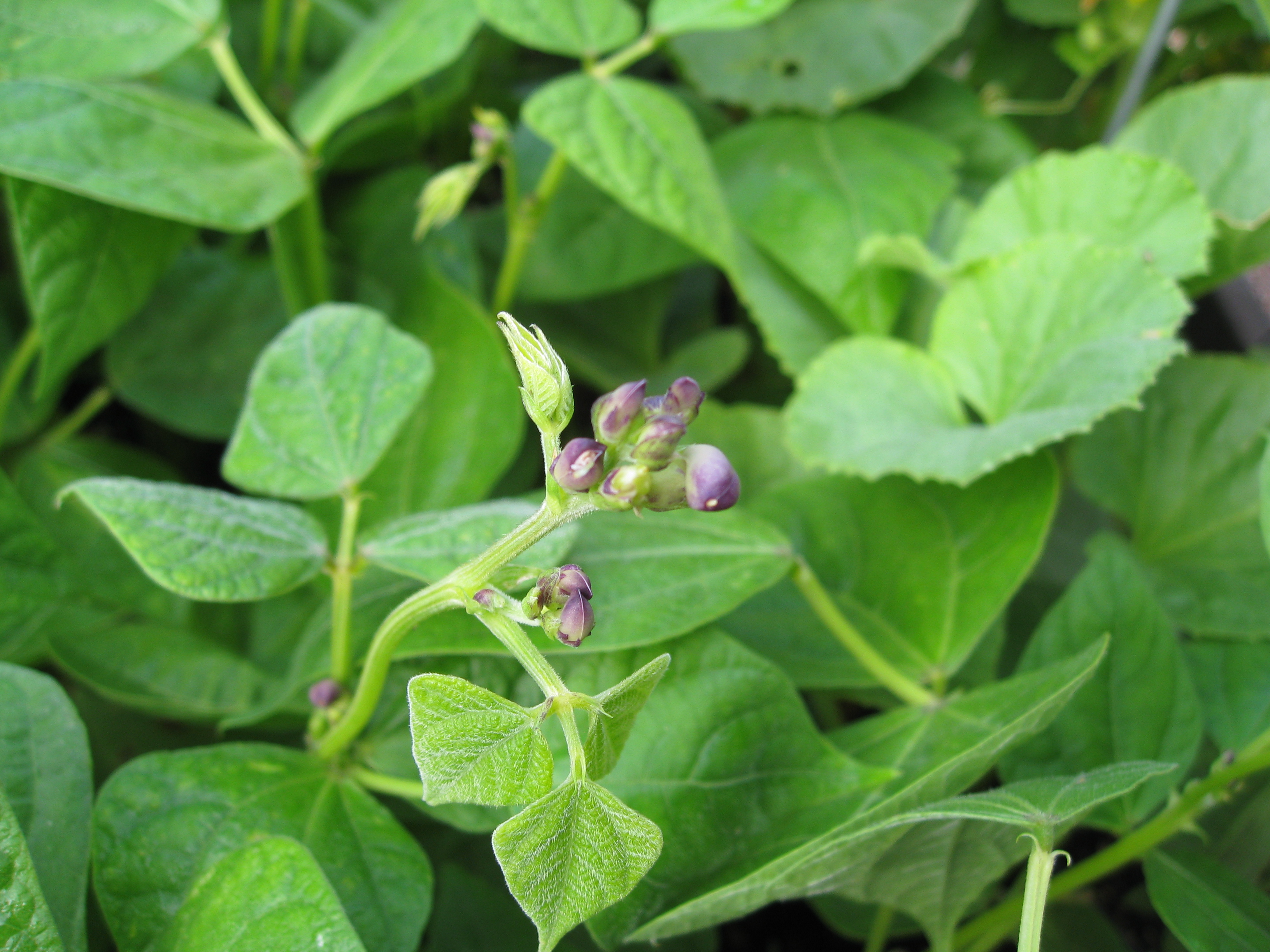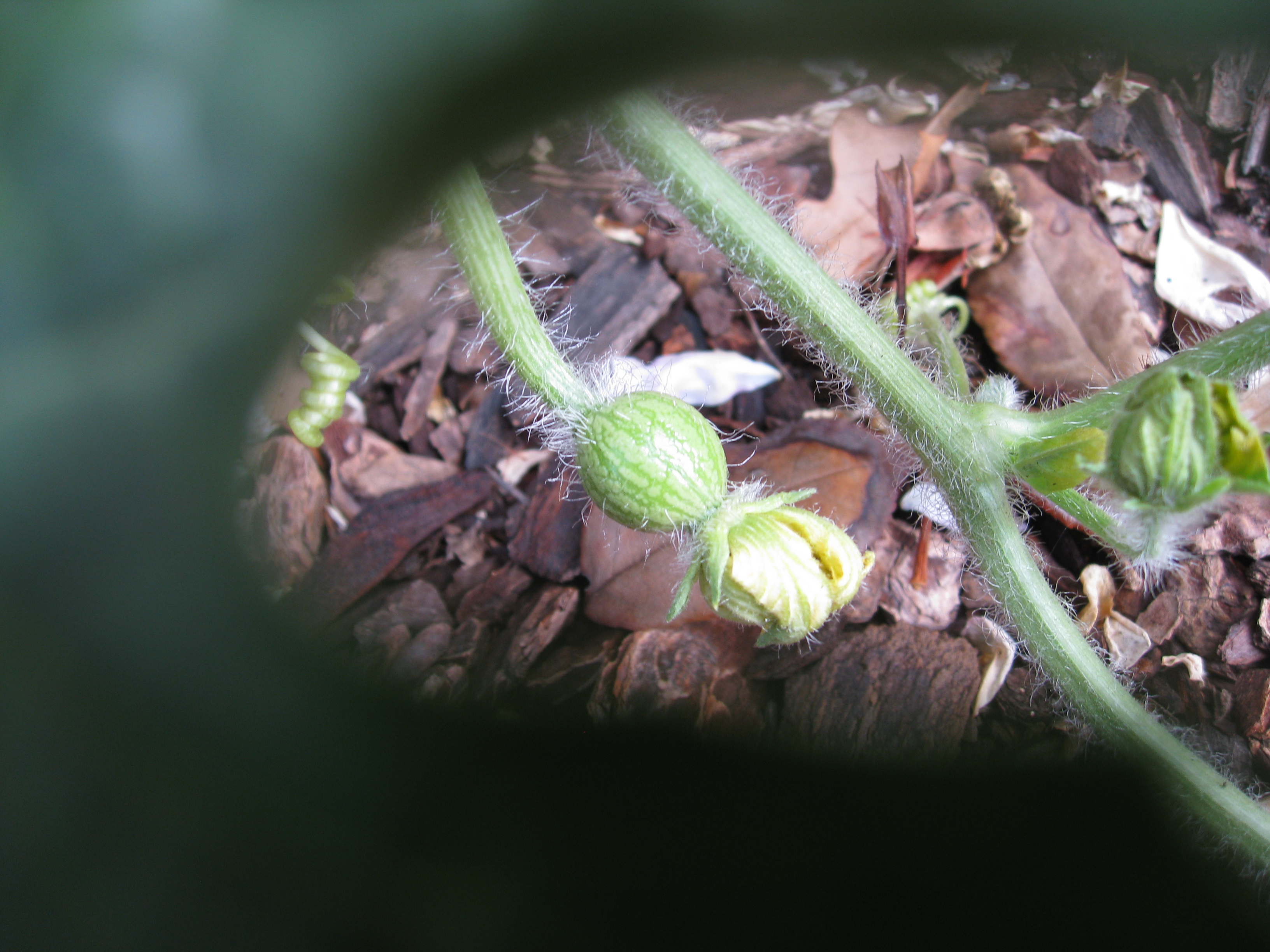 Tiny watermelons set fruit (shot through the crook of a watermelon leaf)