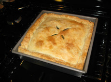 the vegetable drawer (which is fine with me, since I don’t care for the stems anyway). I recently found a recipe that uses up all that chard in a tasty pie that lasts for a few meals.