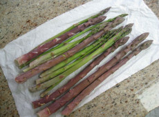 (fade in on woman in garden hat, carrying gardening pruners, running from the kitchen door to the asparagus bed. She snips a few spears with a smile on her face, runs back to the