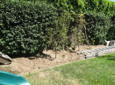 Today I helped a family in Corona Del Mar to plant a garden in a small space in their back yard. The space was occupied with a couple of recently planted fruit trees that weren’t yet established, and some shrubs. After measuring the space and making some suggestions for plant removal, we were on our way.