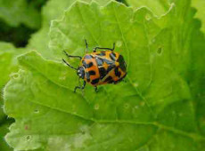 The Harlequin Bug (murgantia histrionica) is a True bug, and a stink bug – which you only find out when you squish them. They are black and orange and are often …