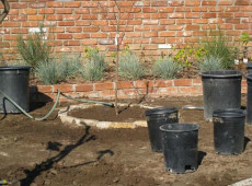 planting them in a large planter – kind of like a raised bed, though maybe not so raised. (I hope to use an old, rotting boat.) This way I can build a metal wire cage over them.