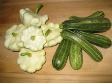 It appears that the zucchini and Bennings Green Tint patty pan squash have officially kicked into high gear – and it’s not even summer yet! This is a crucial time – when one needs to visit the garden every day, lest there be a monster squash discovered after a few days away from the garden. So far, so good. We’re catching the summer squash early and picking them young. Now to find recipes…