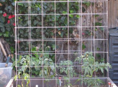 longer. My tomatoes needed support. They were having a breakdown – or a “tip sideways” so to speak. So I set out to build new cages for my leaning tower of tomatoes at